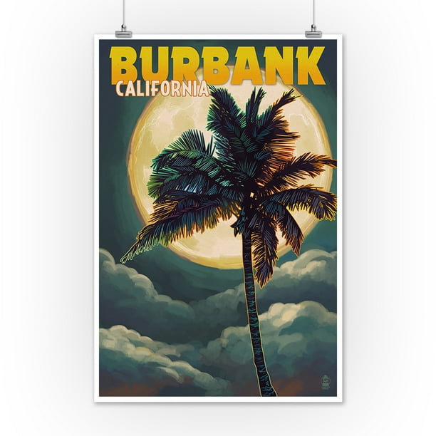 Burbank California Palm And Moon Lantern Press Artwork 12x18 Art Print Wall Decor Travel Poster Walmart Com